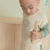 Bộ dài tay thun tăm hình sư tử Little Love - Màu kem (9th - 12th)